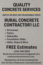 At Rural Concrete Contractor1 LLC, we are dedicated to providing high-quality concrete solutions With Over 40 Years Of Experience In Construction Mostly Concrete.